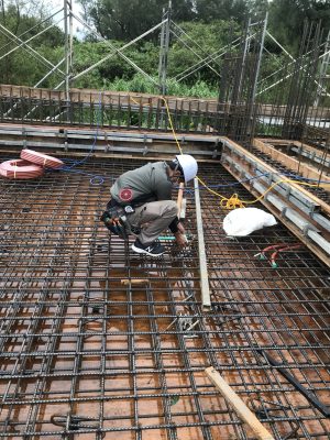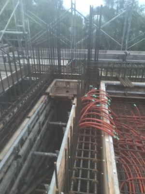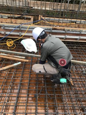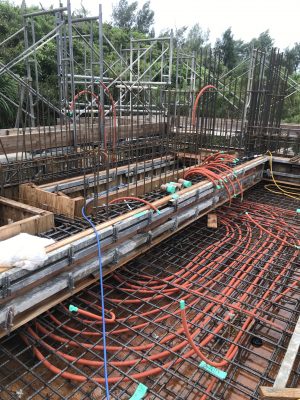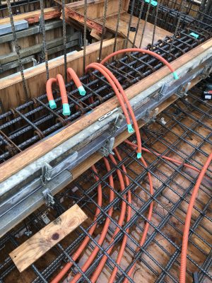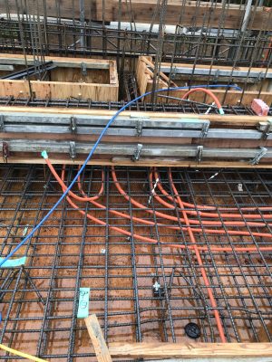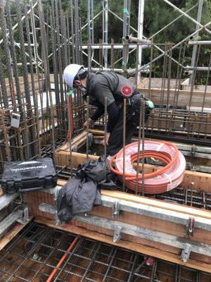 あらかじめ鉄筋の間に電線を通す配管を仕込む作業の事です!