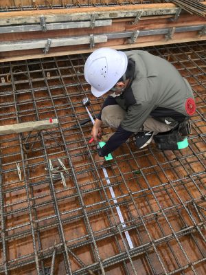 配管を鉄筋の間に通す前に、器具を付ける場所や配管を通す所にしるしをつけます。